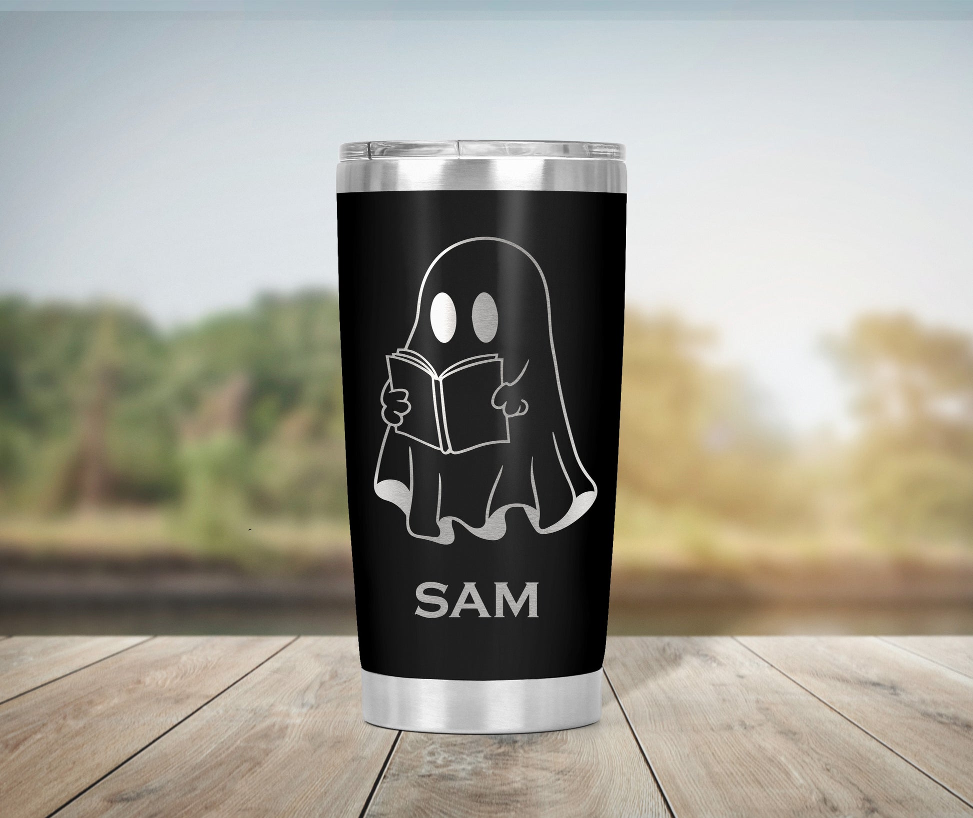 Personalized Halloween Tumbler – Ghost Reading a Book | Custom Engraved Cup 👻📚